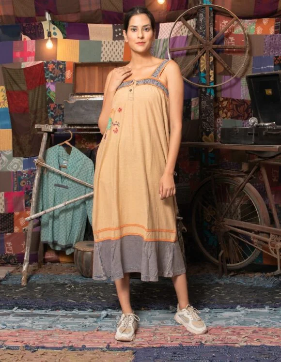 The Cute Vintage Composition Moroccan Influence Colourfully Hand Embroidered Retro Dress Featuring Vintage Wash
