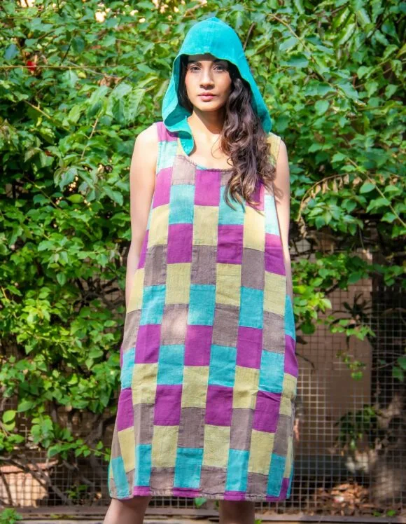 Cheerful And Fun Loving South American Inspired Colourful Patchwork Vintage Hooded Dress