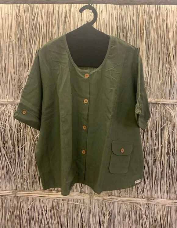 Peace Of Mind On A Perfect Sunny Summer Weekend South American Influence Retro VINTAGE Wash Shirt Featuring Oversize Styling And Handmade Fabric Buttons