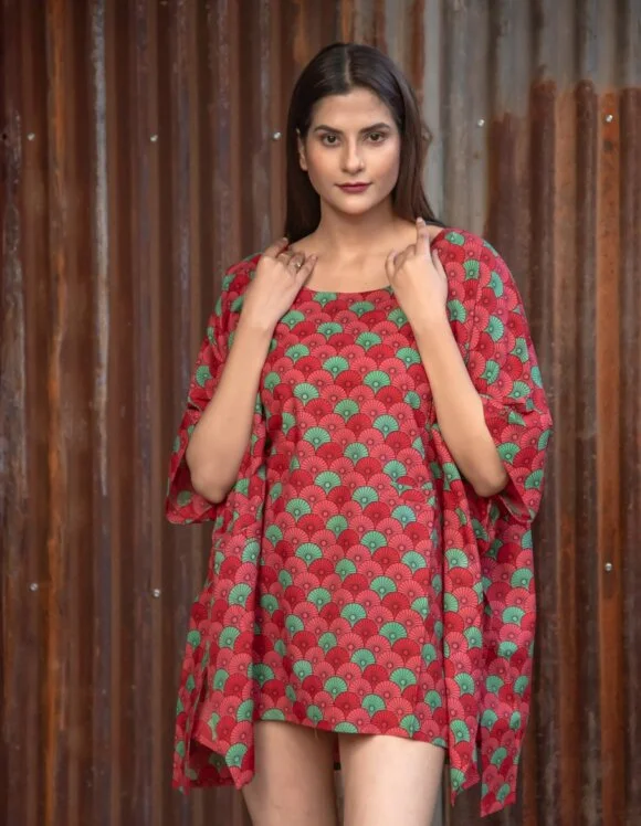 A Twist Of Fun And Laughter Moroccan Influence Oversize Styled Poncho Dress Featuring Colourful Floral Print And Stylish Pockets