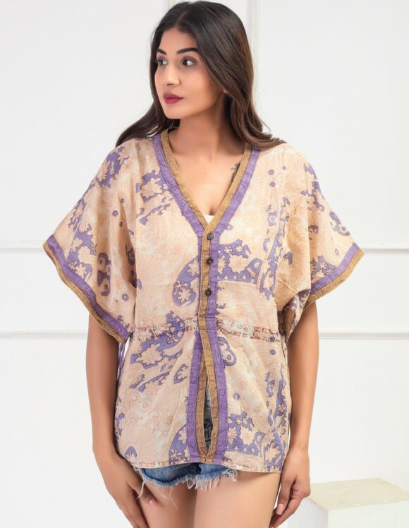Hyped Day Trip To Mount Fiji South American Influence Intricately Shibori Washed Bohemian Tunic Featuring Mushroom Motive Hand Appliqué