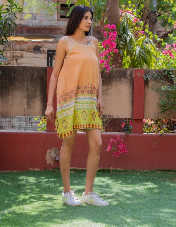 Hyped For The Annual Summer Party Night Moroccan Influence Bohemian HAND BLOCK PRINTED Dress Featuring Stylish Drawstrings