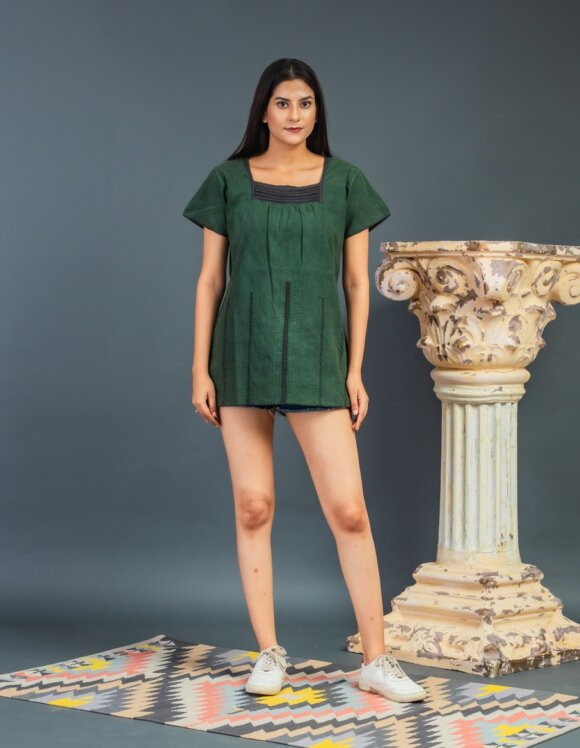 Next Level Optimism French Influence Intricately Hand Embroidered Vintage Short Pullover Featuring Solid Color Detailing & Pin Tucks Embellishment