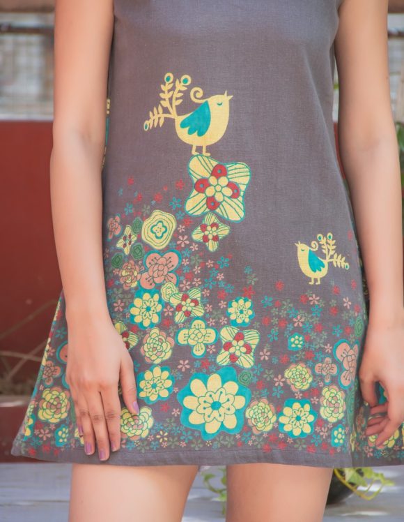 Seriously Sweet And Retro Moroccan Influence Moroccan BIRD PRINT Retro Dress Featuring Vintage Wash And Floral Print Detailing