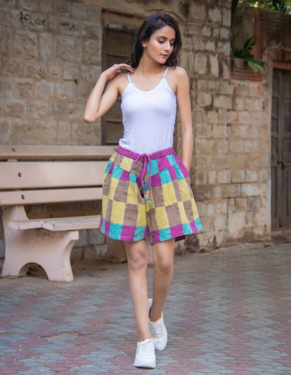 Happy Memories Of Fun And Laughter South American Influence Vintage Patchwork Shorts