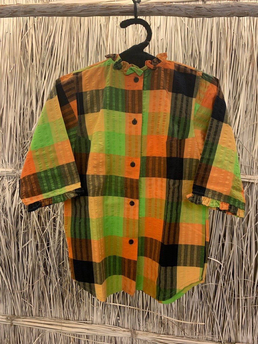 A Melodious Sunday Afternoon French Influence Hand Woven Tarn Dyed Tunic Shirt Featuring Retro Style Frills