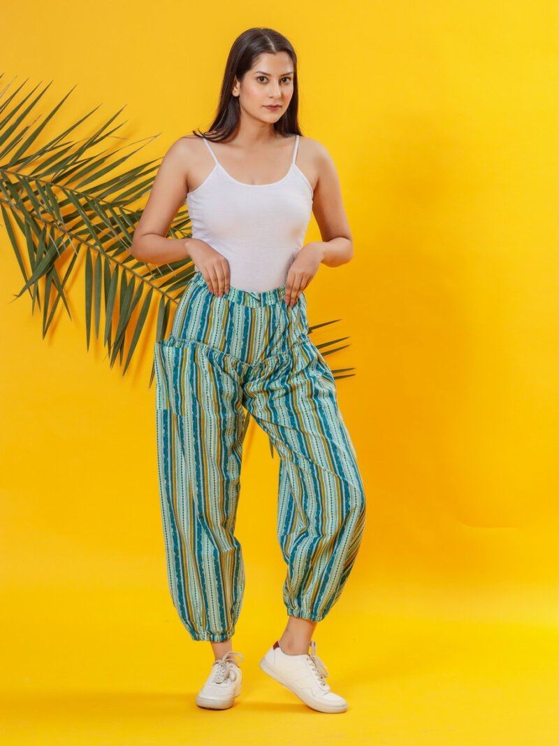 Beyond The Shades Of Style And Elegance French Influence Geometrical Print Bohemian Jogger Pants Featuring Stylish Pocket