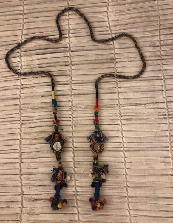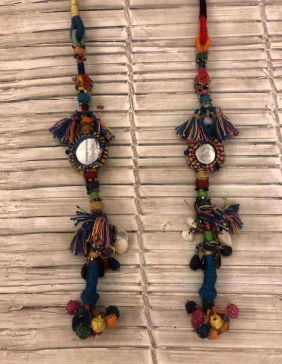 - Mirror work with handmade beads decoration