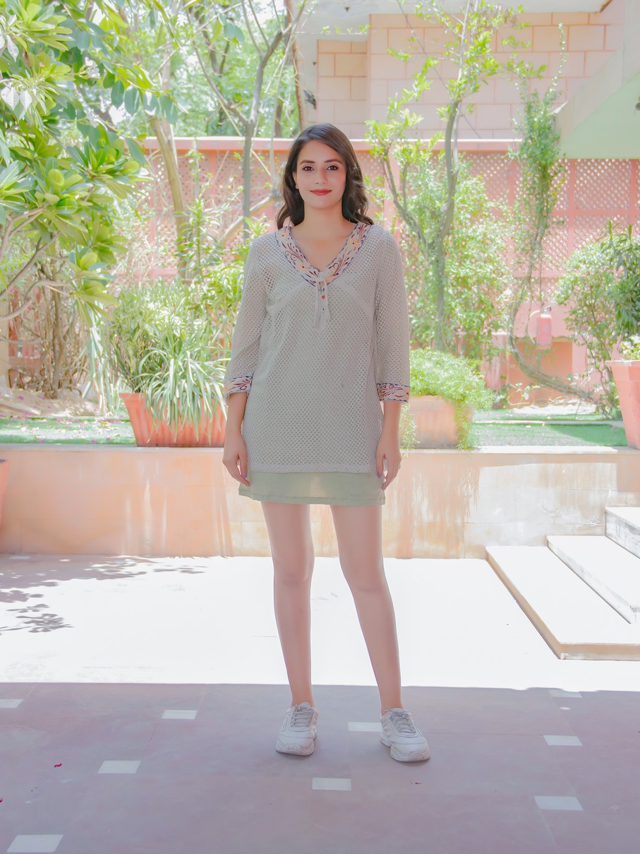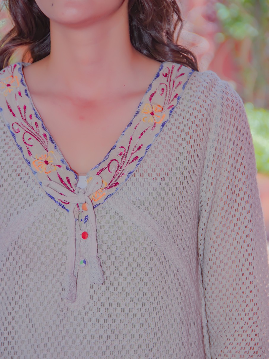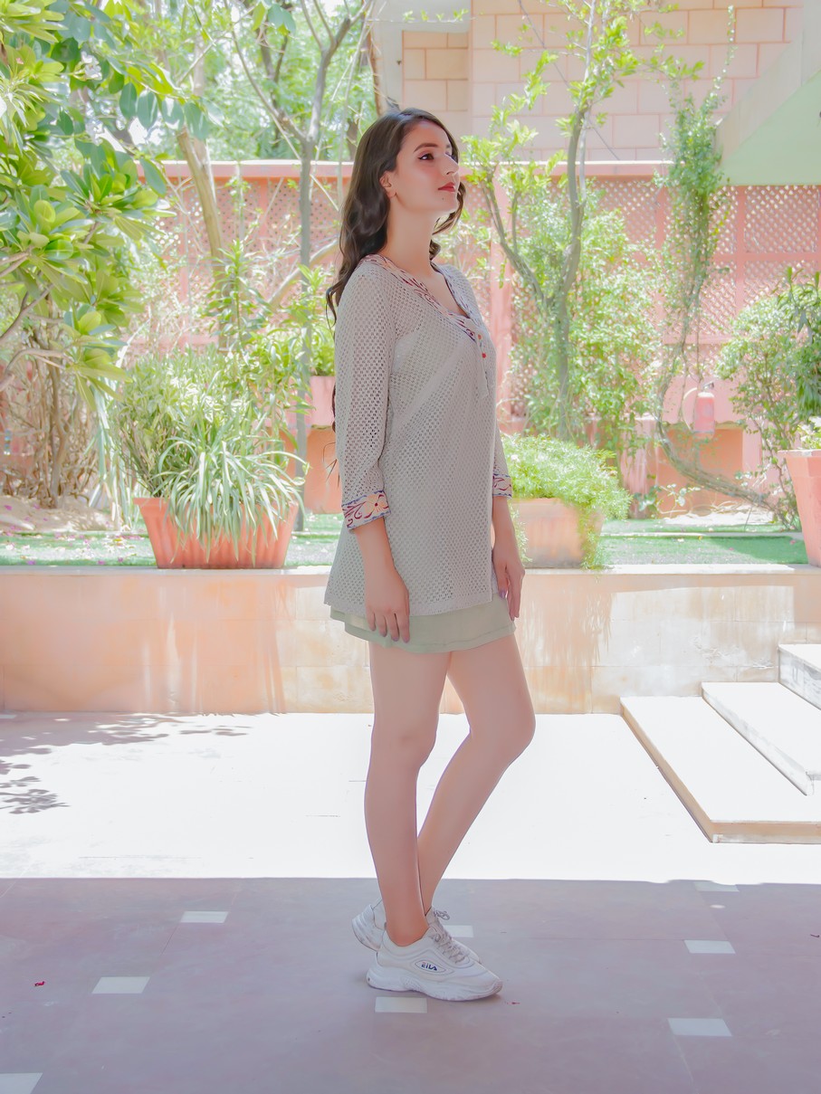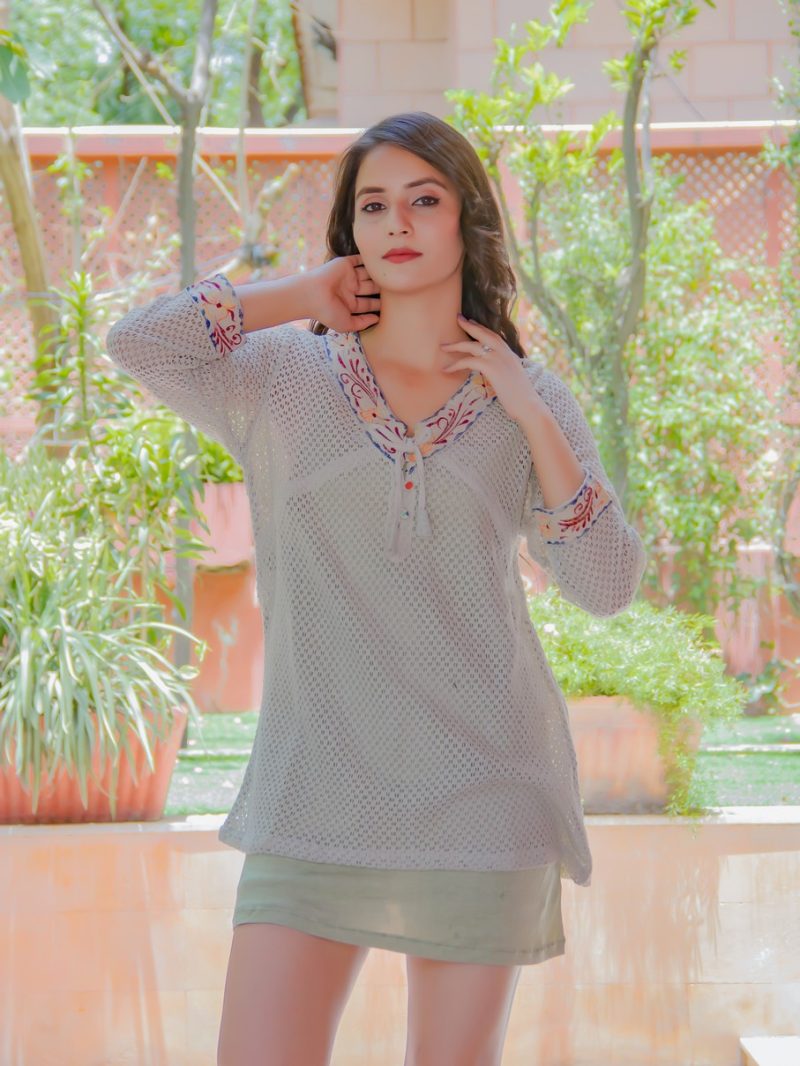 -HIGHLIGHTS- · Hand Crafted by local artists · 100% Cotton Crochet · Moroccan Influence Design · Mesmerizing Embroidery Detailing · Stylish neckline · Stylish Tie String At Neckline · Cute Handmade Fabric Buttons · Comfy silhouette · Contemporary style