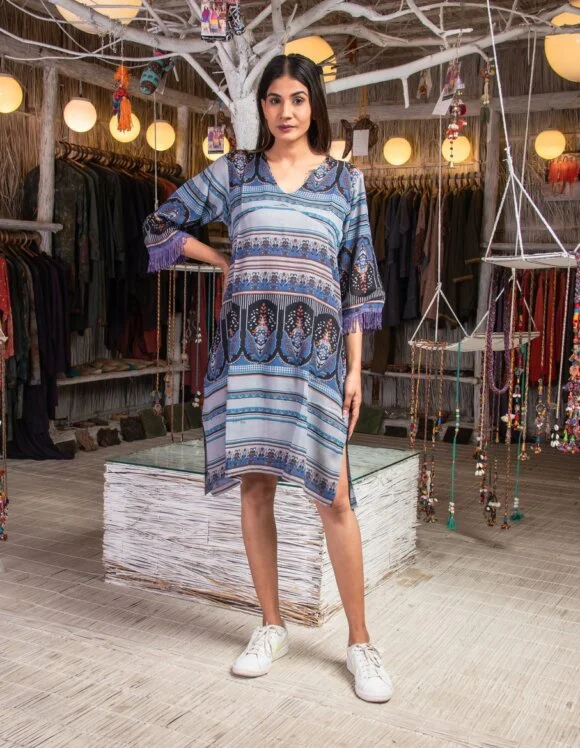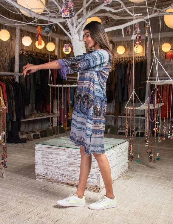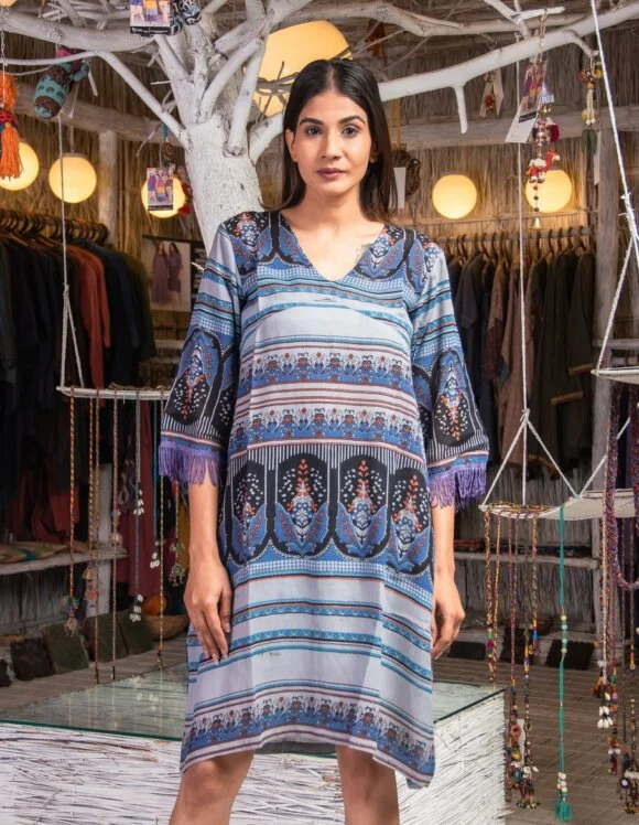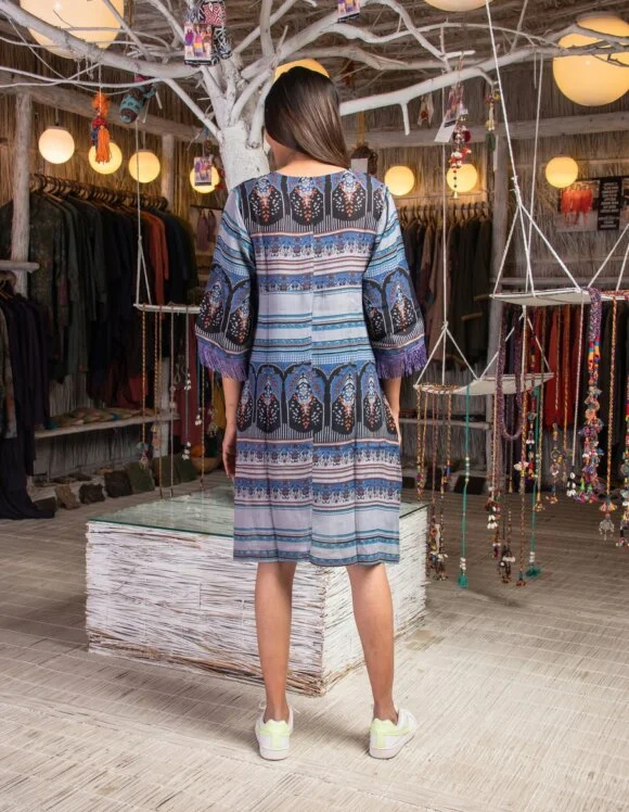 Cruising Through The Monsoon Wonderland French Influence Printed Short Dress Featuring Stylish Sleeves
