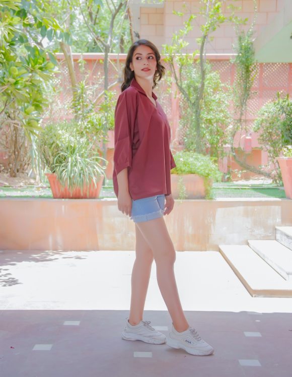 Fading Into The Autumn Horizon Moroccan Influence Oversized Tunic Featuring Stylish Collar