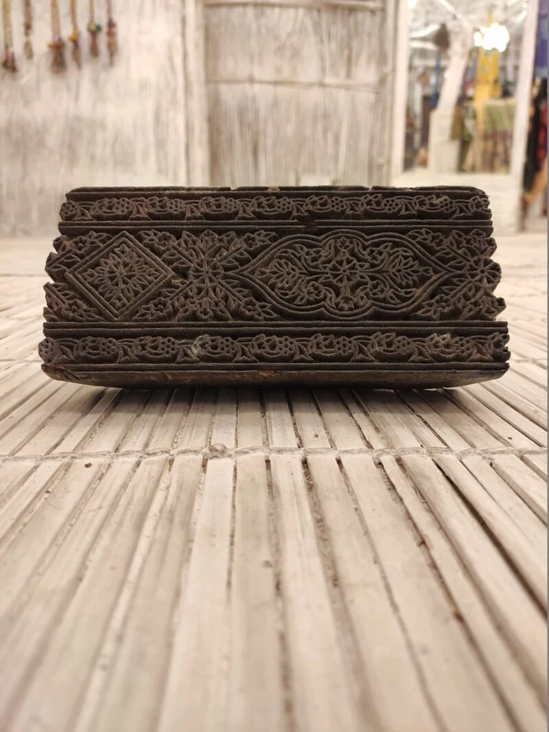 Geometrical Fan Intricate Border Design Wooden Hand-Block Stamp