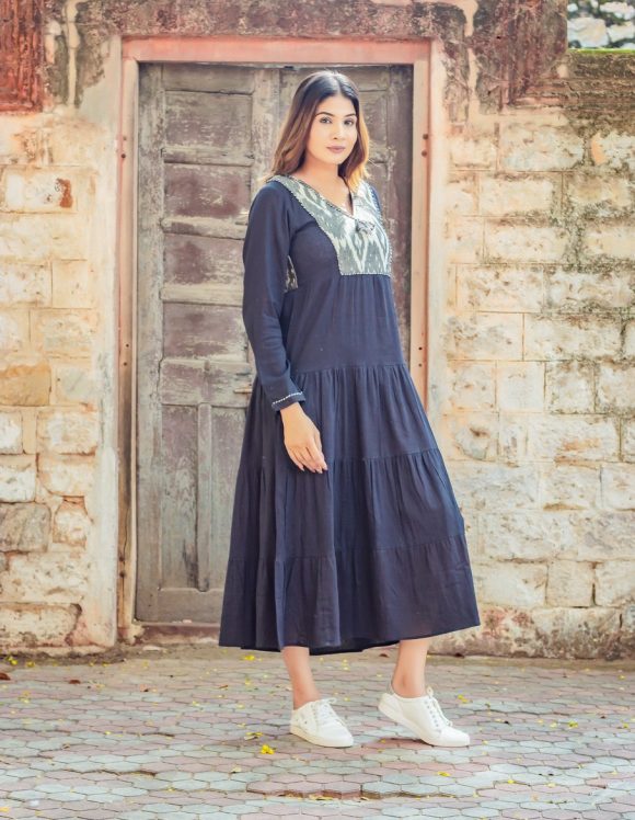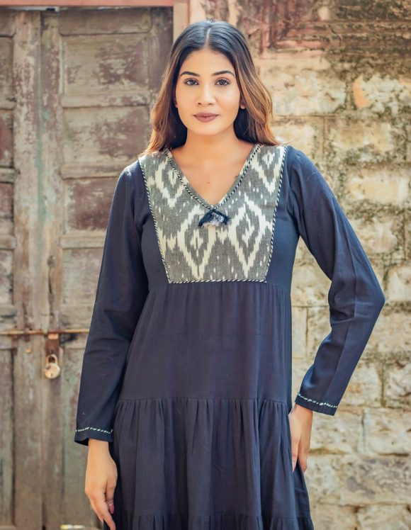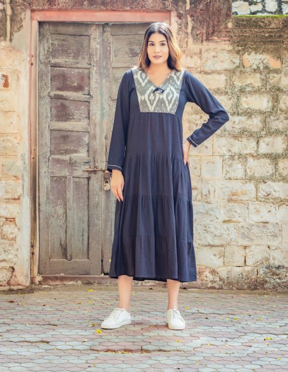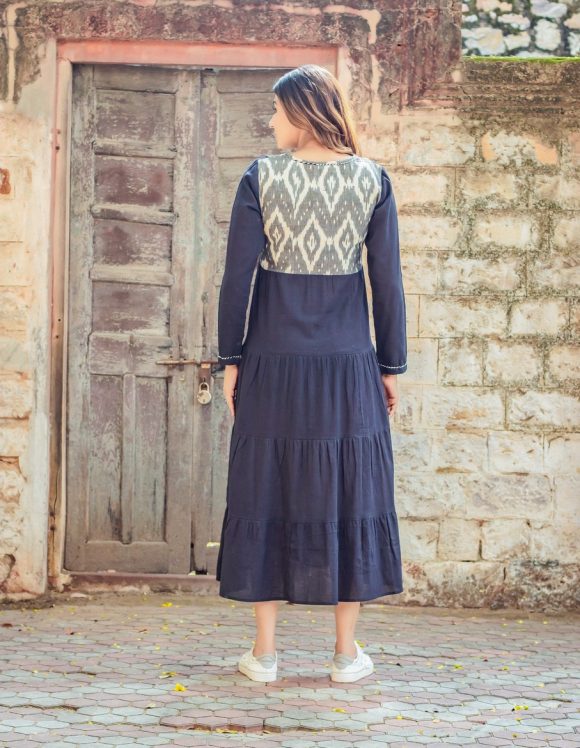 Happy Mountain Ride On An Enchanting Sunny Weekend Moroccan Influence Bohemian Tired Dress Featuring IKAT Detailing And Colourful Hand Detailing
