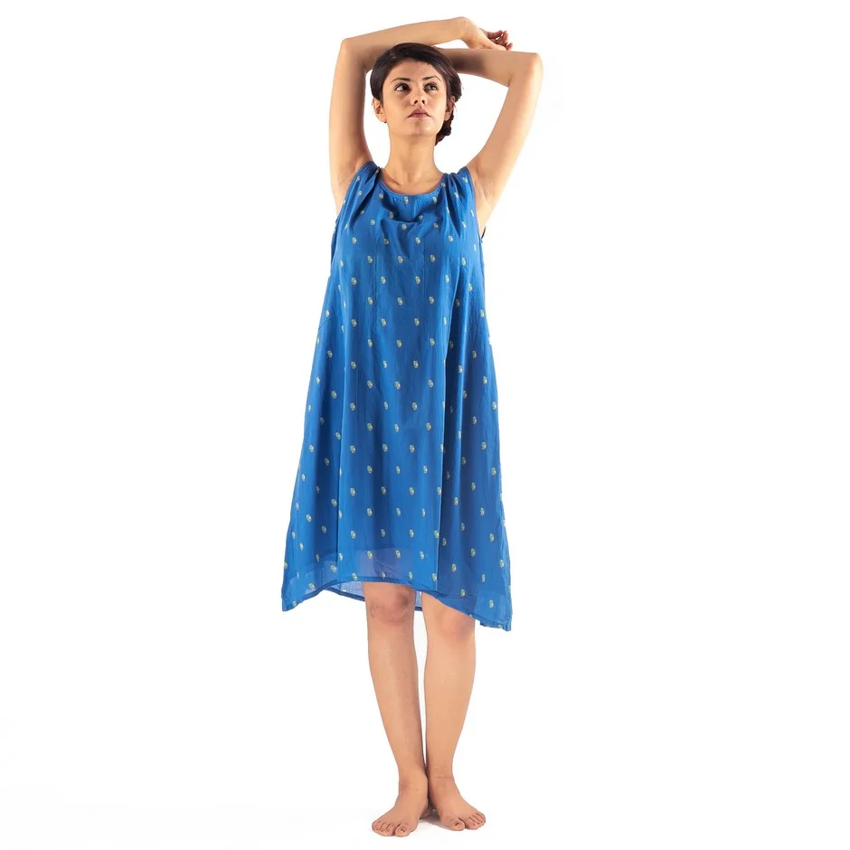 You will really feel the love & adoration that will be generated for you while wearing this Comfy cotton Blue owl print sun dress from Art Nouveau print desk . Showcasing breezy Sleeveless style with Smooth A-line & a crisp round neck, this softly ruched woven number is one of the most comfortable & elegant pieces of your wardrobe,