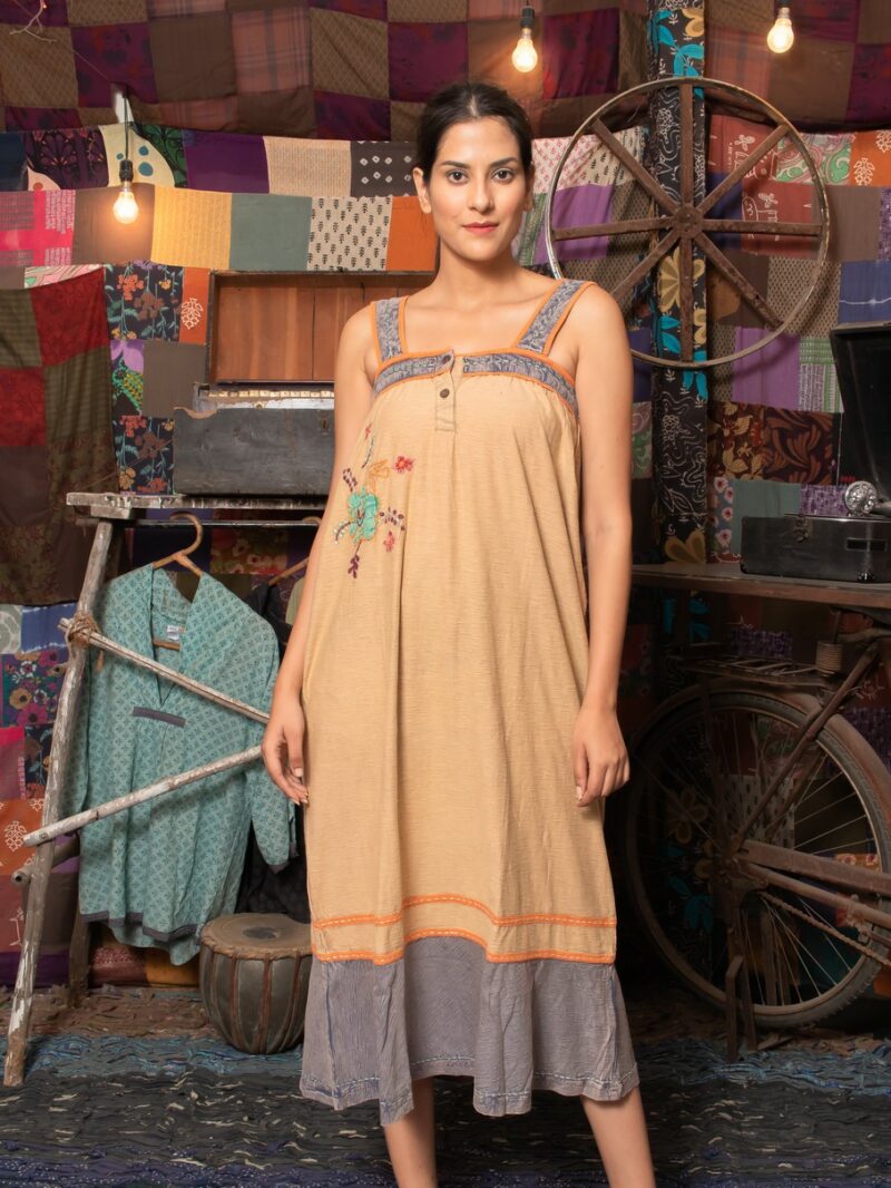 Just Breezing By The Autumn Jungle French Influence Embroidered Vintage Dress