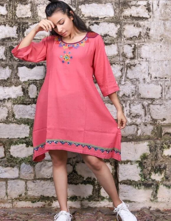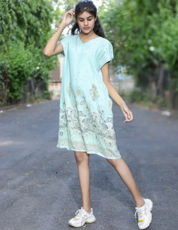 Every single thing about this woven Rayon two way skirt cum dress from Art Nouveau is as per your idea of PERFECTION. An elasticized waist/bust line with free flowing A-line silhouette on this charming Beige colored ensemble is all that exists to make you happy.