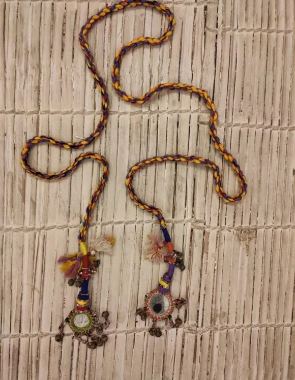 - Mirror work with handmade beads decoration
