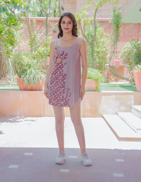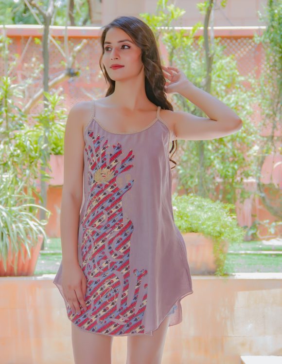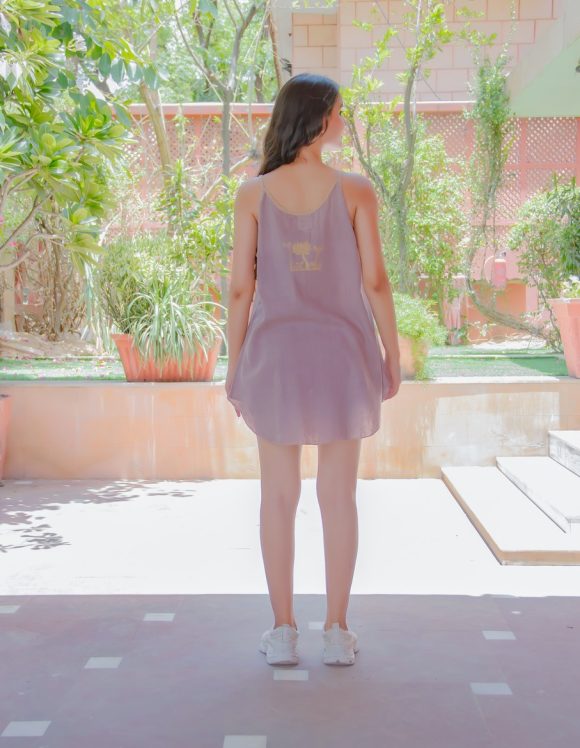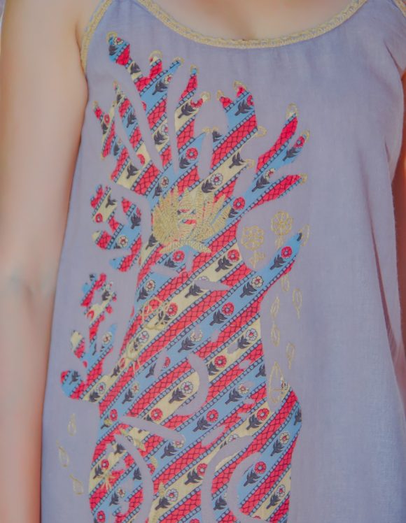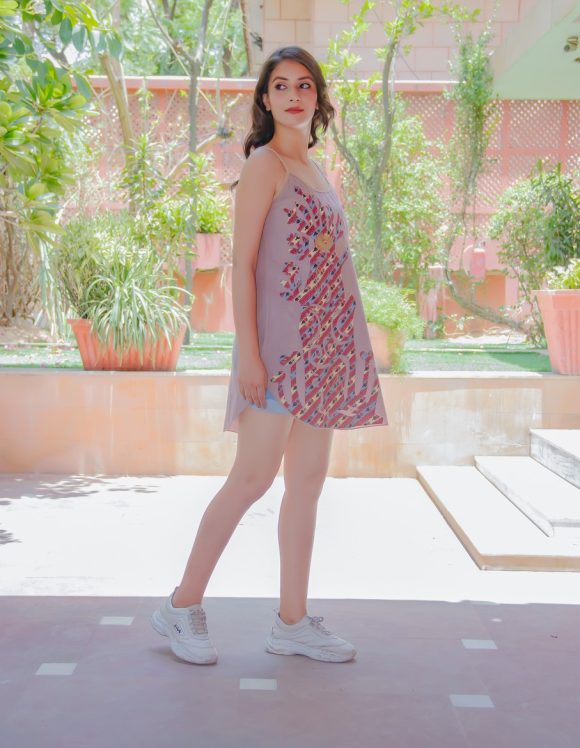 On The Beach With My Besties South American Influence Retro Short Dress Featuring Mesmerizing TREE Appliqué With Embroidery