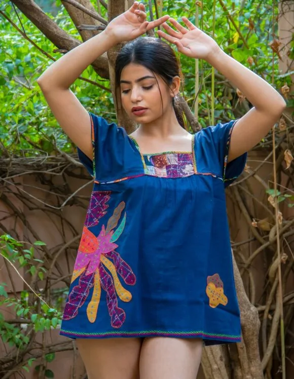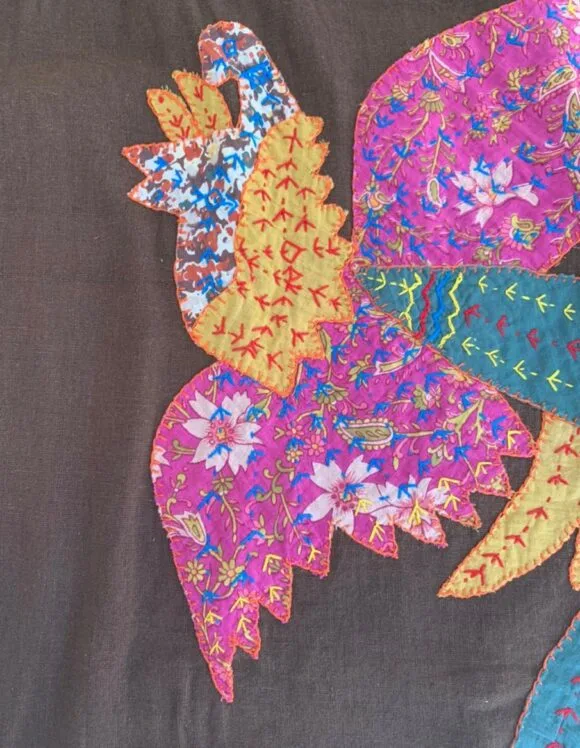 - Intricately done colourful Hen motive appliqué & embroidery