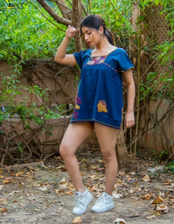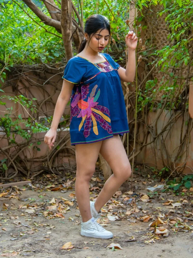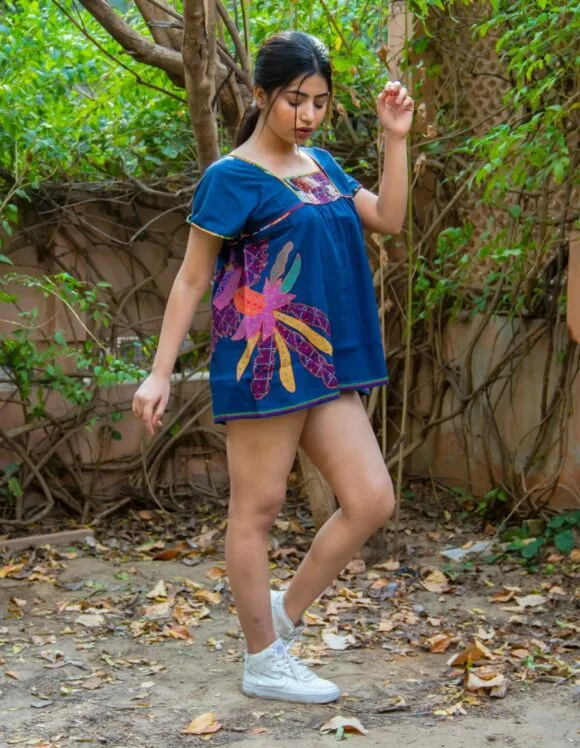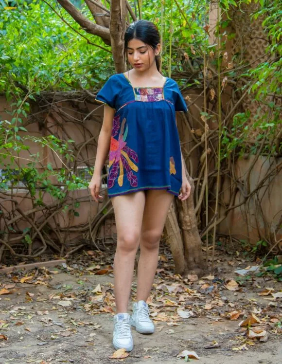 Peace & Love On A Perfect Caribbean Weekend French Influence Colourful Hen Embroidery Motive Retro Short Dress