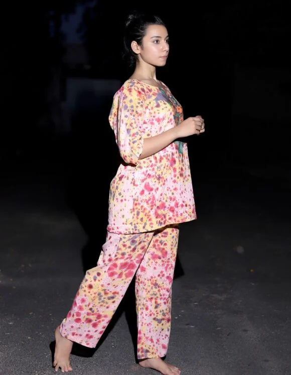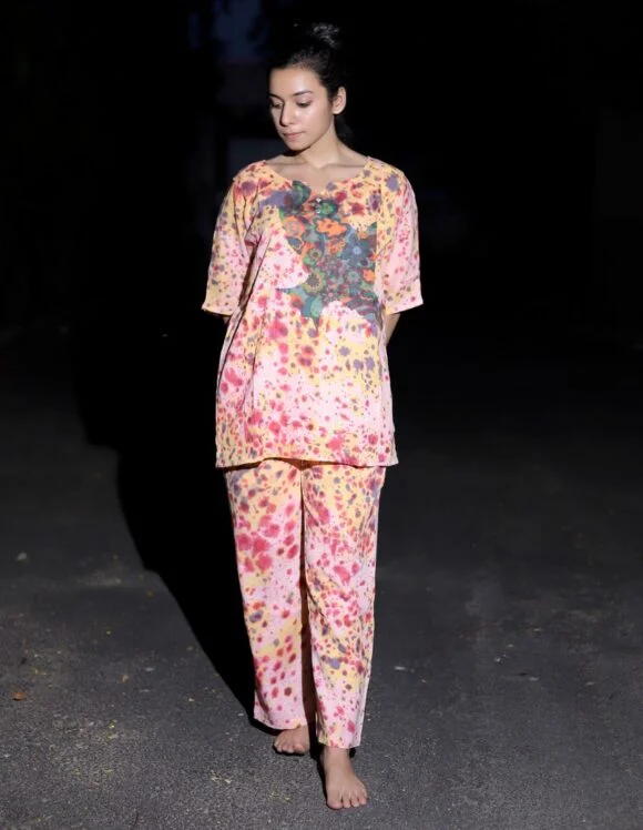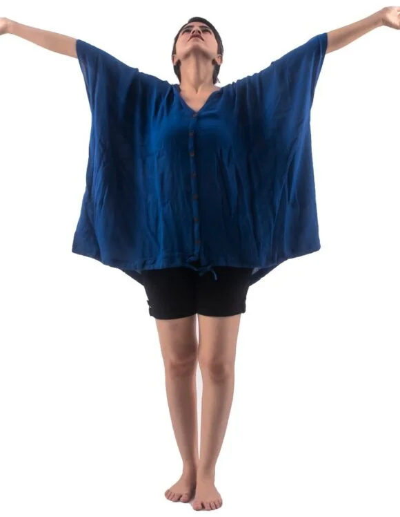This perfectly designed blue color cotton top blouse from Art Nouveau features an eyelet design with comfy short sleeves making it easy to achieve effortless look that you have been waiting for. Adding to the look is comfy round neck & back slit opening with button. Eyelet details on this exotic ensemble raises the bar of the airy cotton construction blouse making this a jewel to your wardrobe addition.