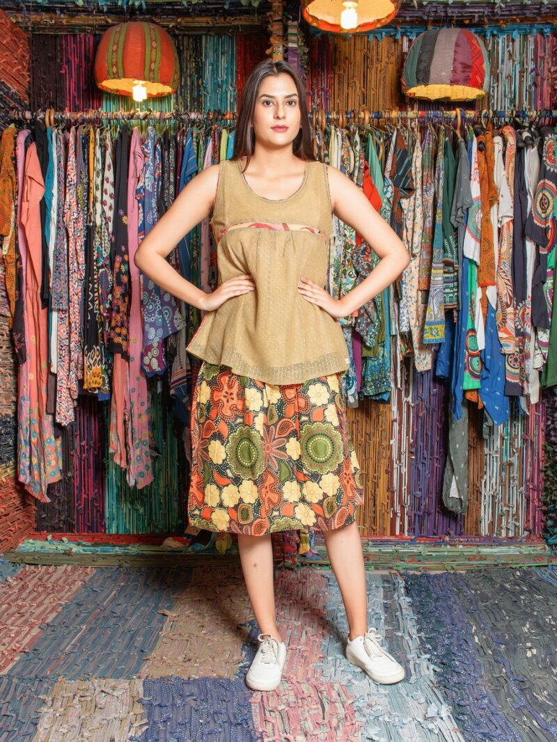 Perfect Ode To My New Year Happiness Moroccan Influence Colourfully Hand Woven Macrame Vintage Tunic And Colourful Floral Printed Bohemian Skirt– Two Piece Set