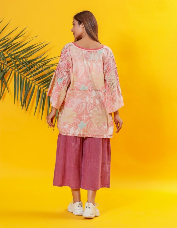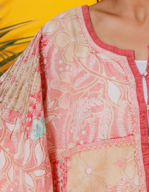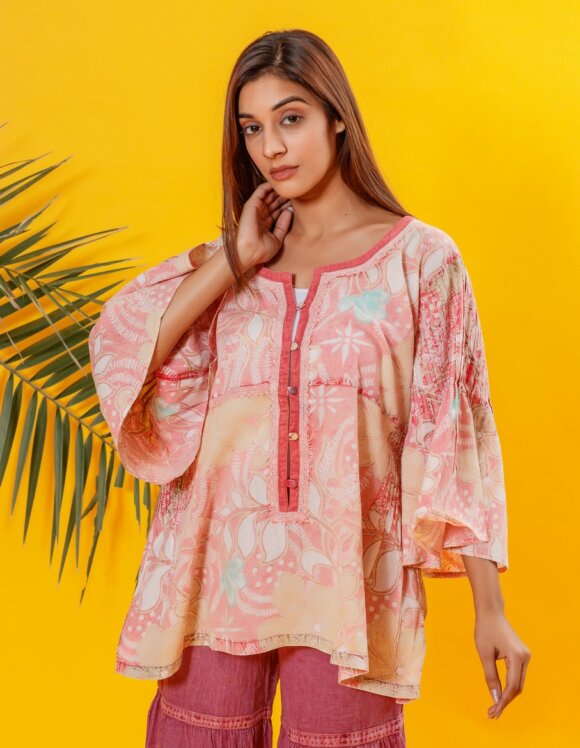 Perfect Retro Holiday At The French Riviera Moroccan Influence Floral Print Vintage Short Dress And Vintage Washed Hand Embroidered Trouser – Two Piece Set