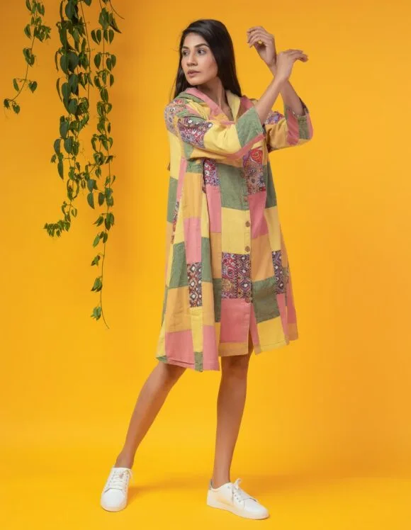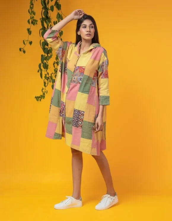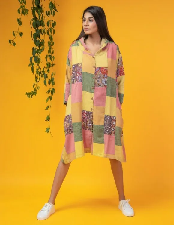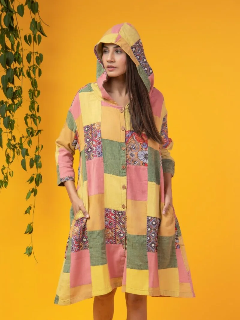 Setting The Perfect Bohemian Mood Moroccan Influence Two Way Wearable Hooded Patchwork Dress Cum Pullover