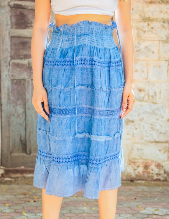 Sweet Wonders Of The Winter Holiday Island Moroccan Influence Bohemian Skirt Featuring Colourful Embroidery And Retro Styled Draw stringed Waist With Faux Fur Detailing