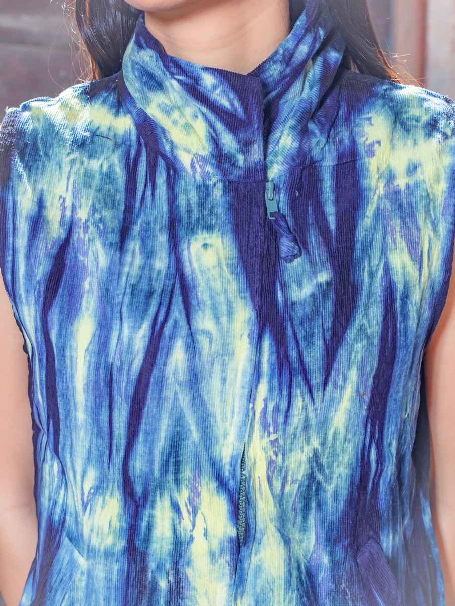 Taking A Tropical Trip To Miami Moroccan Influence Intricately Shibori Washed SUMMER Corduroy Jacket Featuring Stylish Pockets