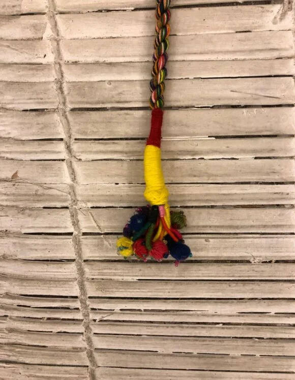 - Multicolour hand knitted tapestry