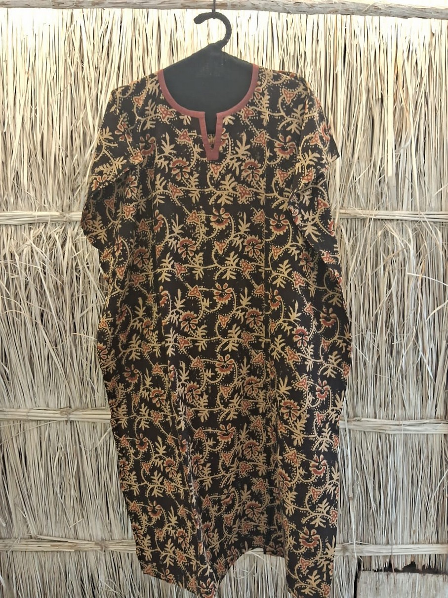 | -HIGHLIGHTS- · Hand Crafted by local artists · 100% Cotton · Spanish inspired design · Mesmerizing Print · Easy to wear · Oversized Styling · Solid Colour Piping On Neckline · Comfy silhouette · Contemporary Style
