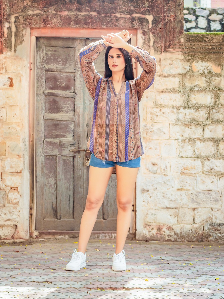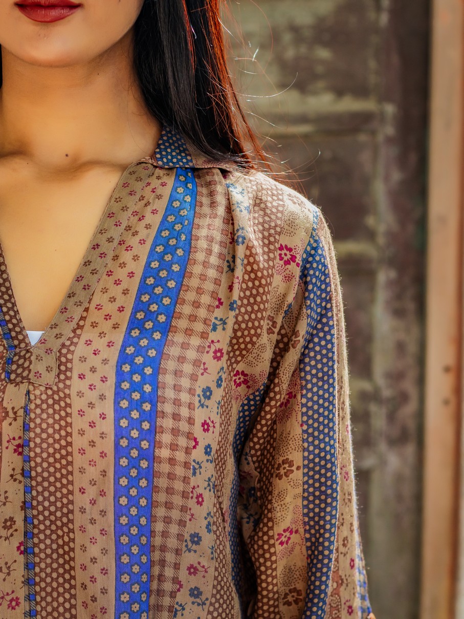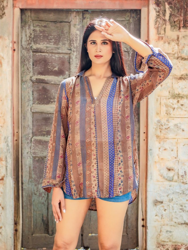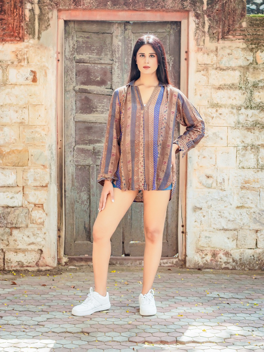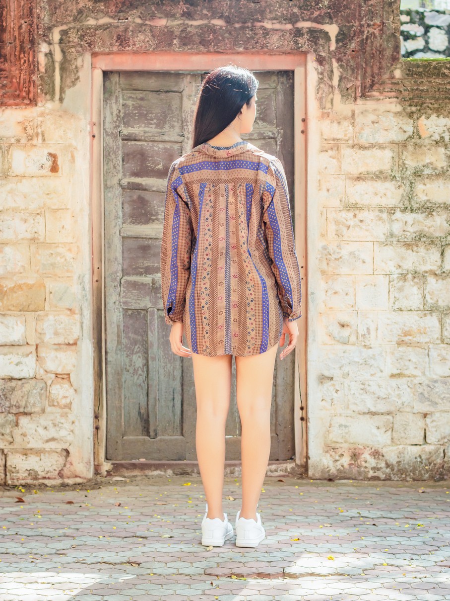 Timeless Sheen Of Success Moroccan Influence Bohemian Oversize Styled Shirt Dress Featuring Stylish Vintage Print
