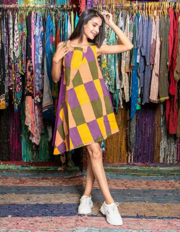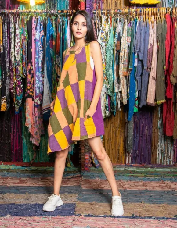 Wrapped In Positive Retro Vibes Moroccan Influence Colourful Patchwork Vintage Dress